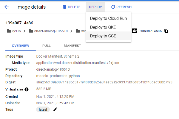 Ahora que tenemos la imagen Docker montada, tenemos que subirlo a nuestra herramienta Cloud favorita. En mi caso, pondré el modelo de Python en producción en Google Cloud usando Cloud Run.