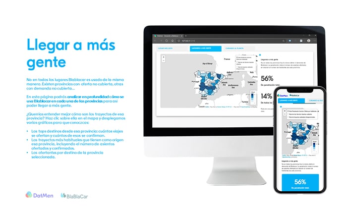 - Llegar a más gente: crear el dashboard necesario para conocer el uso de Blablacar en diferentes provincias y así poder .